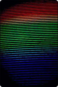 At right is the echelle spectrum from our prototype. It shows absorption lines from the sun at extremely high resolution. Each stripe represents less than 20 angstroms. This offers 50 times more data than our single order spectrograph.