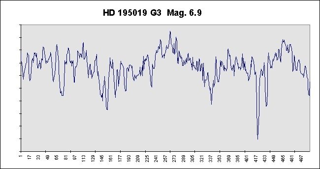 The spectrum at left is from the star HD195019, a 6.9 magnitude G3 star with a confirmed planet. It is a low signal-to-noise spectra at 0.4 ang. per pixel but represents our current magnitude limit.