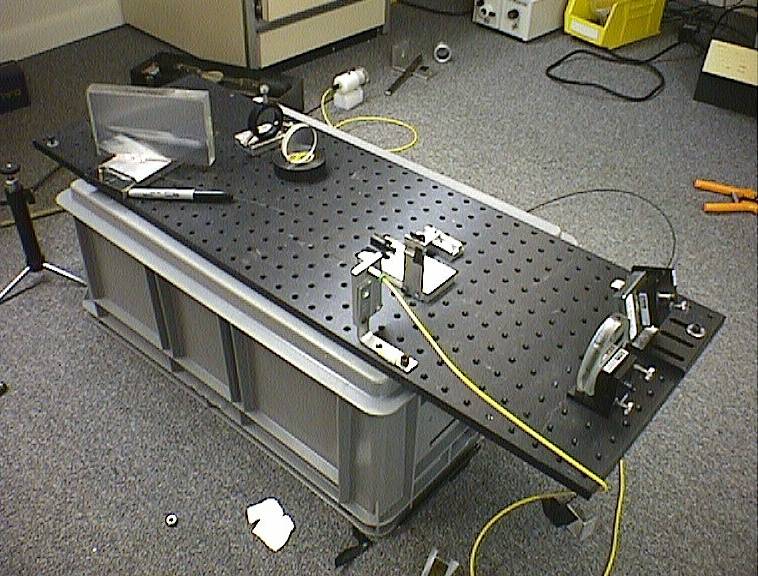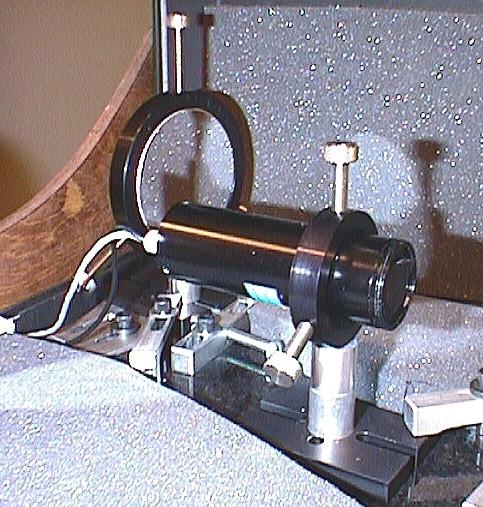 We are experimenting with this setup as shown in the picture at left, and very preliminary estimates show a possible resolution of 27,000, about double where we are now. We hope to construct a new system around it soon.