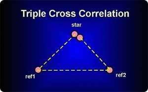 We are working with IRAF exclusively at this point using Fxcor to do Fourier cross correlations. Fxcor can detect very small shifts between spectrums with accuracy well below 1000 meters per second. A second reference fiber has been added below the stellar cluster. The ref1 and ref2 fibers allow triple correlation the data; this tells us if the system is stable during the stellar exposures and gives an indication of the noise contribution. The graphs now show three plots. The first is ref1 correlated against ref2 and shows the system stability throughout the run. The second and third plots are ref1 to stellar fiber and ref2 to stellar, giving us an indication of how good the signal to noise is from the star exposure. If the S/N is too low, instead of these two plot points being on top of each other they start drifting apart.