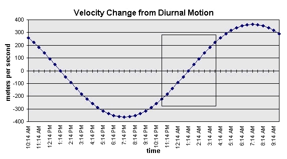 Diurnal motion is the rotation of the earth and can be easily visualized by imagining you are on the moon looking at the earth rotate. As you watch North America come over the horizon it first moves toward you as it rotates into full view and rotates away as it disappears again. A person on the earth would first speed toward the moon and then away again as the moon sets in the west. This velocity change caused by the earth’s rotation is about 500 meters per second and provides a convenient method of measuring small shifts in radial velocity.