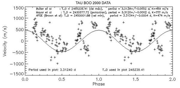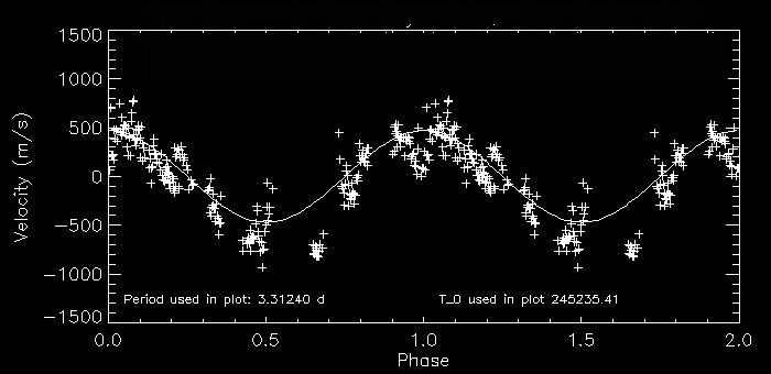 The rejection was based on a couple things, first our phase was off 180 degrees (my fault, I got the sign convention wrong, I am not a math guy) and second our final orbital period was 3.15 days, off slightly from Marcy’s 3.312 days. In the professional astronomy world you have to mathematically prove that your result would not happen by chance 99 out of 100 times. This is known as a three sigma detection, and unfortunately our 3.15 day result with its formal uncertainty, did not fall into that zone. In effect, our data led to the conclusion that ‘we are 99% certain that the period is 3.15 days, not 3.312’ – which of course does not agree with the previously published work. While it may be obvious from our graphs that we did see the planet, the noise dominated data leads to the professional perspective that “we didn’t detect anything”.