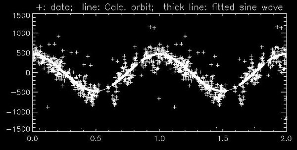 Originally we had much closer results for the orbital period – these are the data we show on this website. About three quarters of the way through the run in 2000 we processed the data to that point and came out with a 3 sigma detection at 3.41 days. This was great, we declared success and finished up the run taking more data, which were not fully analyzed at the time. Now reworking the complete data set we only come out with the 3.15 day orbit no matter what we do. To practice good science at the professional level you can’t just selectively use data, it’s all or nothing unless you have good reasons for your actions.